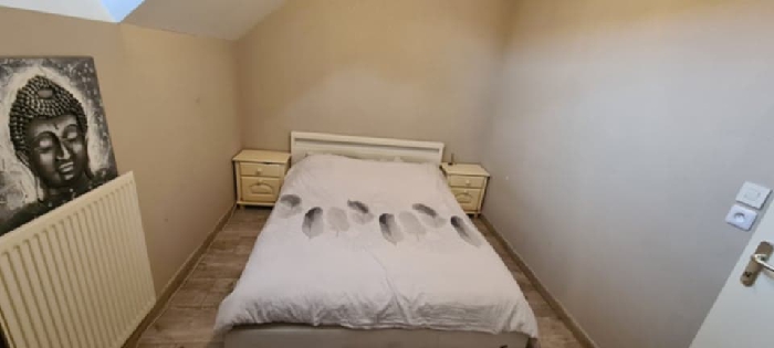 À l’étage, vous trouverez deux belles chambres, dont une avec placard, ainsi qu’une salle de bain avec rangements et WC.
