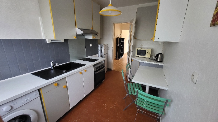 Cet appartement dispose dun grand séjour lumineux donnant sur une cuisine aménagée et équipée (plaque de cuisson, hotte, four, machine à laver). Vous bénéficiez également dune belle salle deau avec WC indépendants pour plus de confort. Une chambre lumineuse avec rangement complète lespace nuit.
