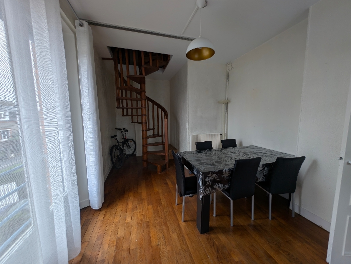 Bel appartement de type 4 situé dans une maison divisée en trois appartements sécurisé avec interphone. Quartier calme et familial, au nord du secteur Châteaudun-Bannier. À 20 minutes à pied (ou 13 minutes en tram) de la gare dOrléans et de la gare de Fleury-les-Aubrais. À 7 minutes à pied de larrêt du tram A. À 10 minutes de la tangentielle et de laccès à lautoroute A10. Lappartement est composé dune pièce de vie lumineuse de 20 m², dune cuisine séparée et équipée (réfrigérateur, lave-vaisselle et vaisselle), de deux chambres, dont une située à létage via un escalier en colimaçon. La salle deau comprend une douche, un sèche-serviettes et une machine à laver. WC séparés. Une petite cour commune vient compléter ce bien. Un parking gratuit situé en face du logement facilite le stationnement au quotidien.
