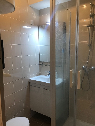 Séjour, kitchenette équipée, chauffage individuel électrique, 1 salle de douche, wc, placards, dressing, bureau, interphone, digicode, local 2 roues, double vitrage, cour close (-1m2), calme, ensoleillé
